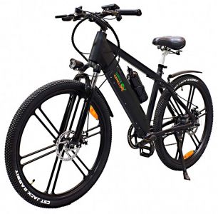 - оснащен 500 ваттным мотором, который разгоняет велосипед до 30 км/ч;
